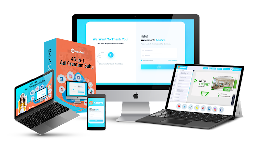 AdsPro, a comprehensive and powerful 45 in 1 ad creation suite that allow you to create professional ads in most popular platforms easily through its drag and drop interface!